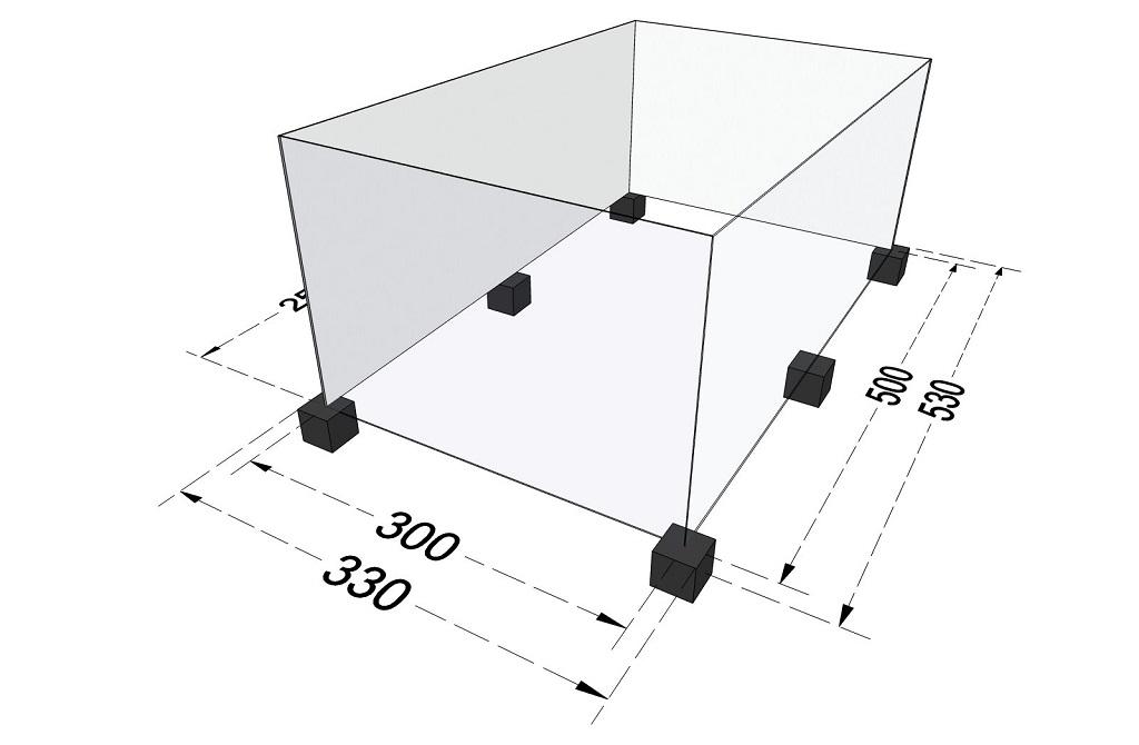 Odporúčaná šírka platne: o 30 cm viac ako rozmery garáže (napr. pre 3×5 m → platňa 3,3 × 5,3 m)
