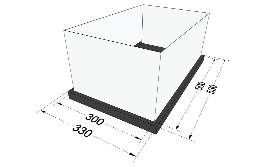 Odporúčaná šírka: o 30 cm viac ako rozmery garáže (napr. pre 3×5 m → platňa 3,3 × 5,3 m)