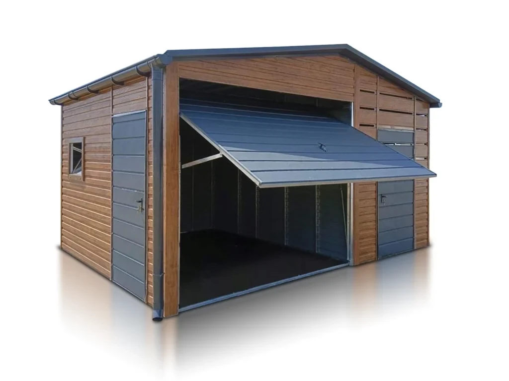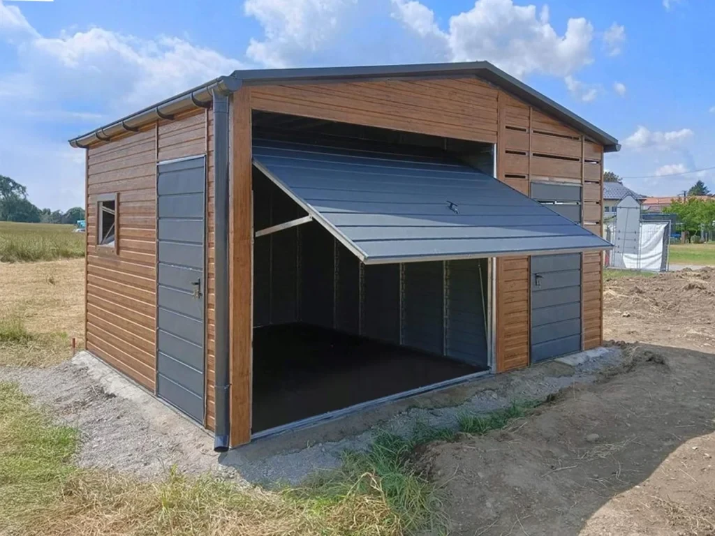 ✔ Výklopná brána + samostatné dvere a okná pre pohodlný prístup a svetlosť